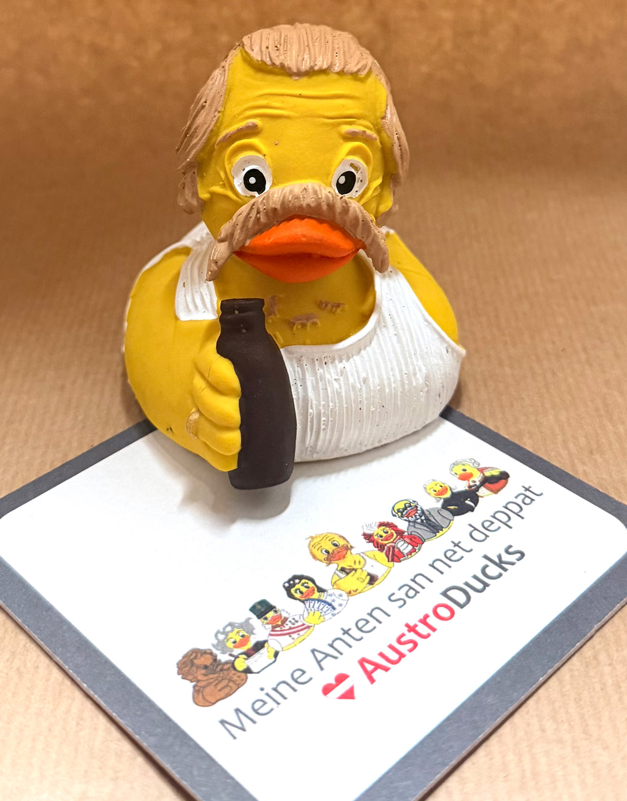 Stilgerecht wird jeder Ente ein Bierdeckel beigelegt….
